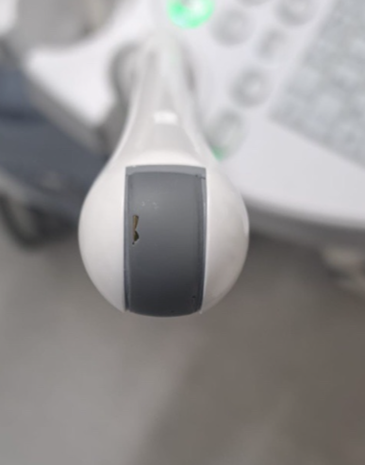 In some cases, material damage can also allow moisture to enter the probe, increasing the risk of internal faults and image artefacts. From both an infection prevention and clinical governance perspective, damaged probes should be taken seriously.