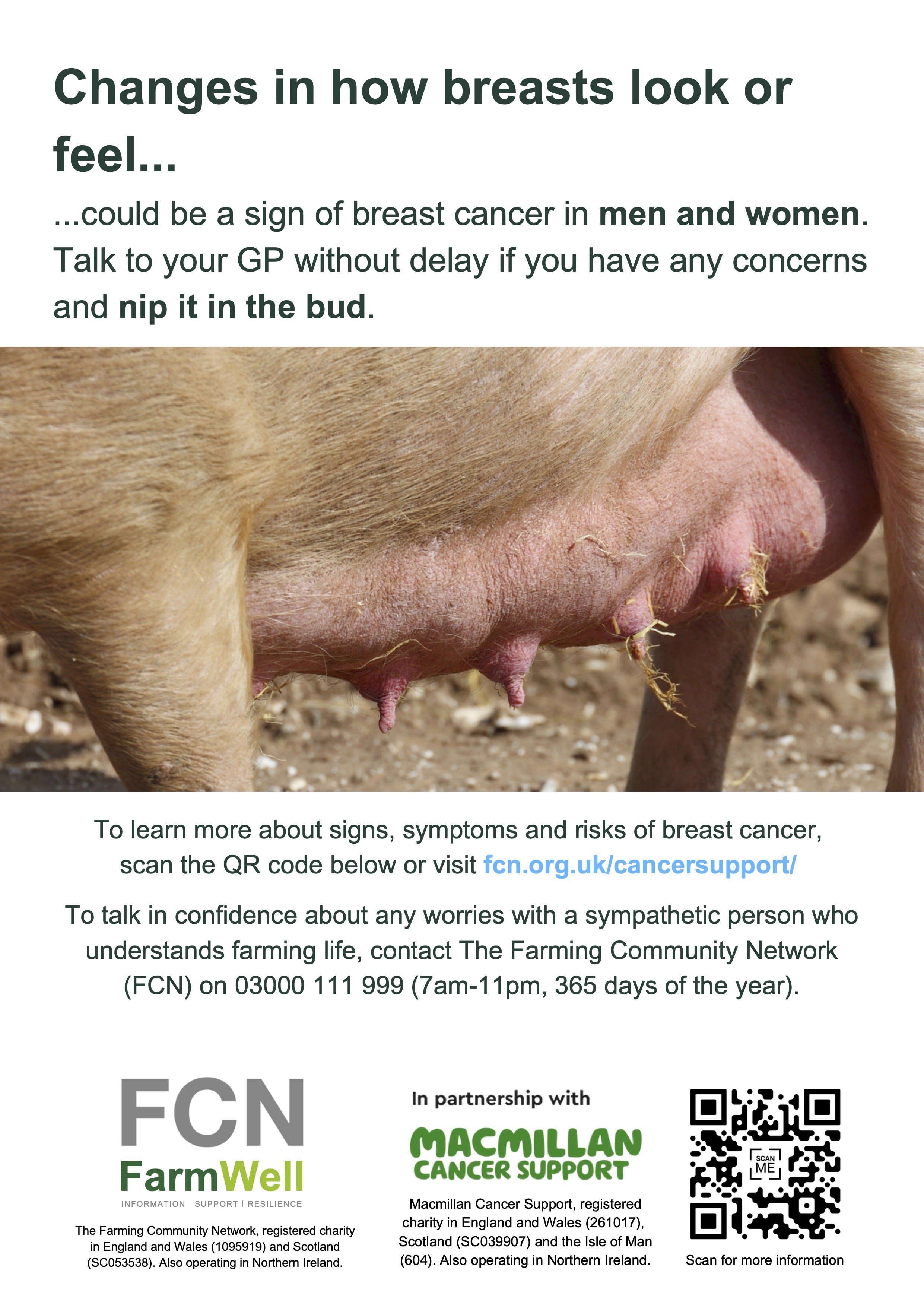 Word has spread among the farming community – not just about the initiative, but also about basic cancer awareness. It all comes back to the goal of early detection shared by the Rural Communities Cancer Project, Macmillan and FCN. “We have also had people coming either from social media, where they see our material, or maybe in different newsletters,” Caitriona continues. “Or, for example, if we have stands at conferences and we are hearing stories where people have seen us. Or they have a conversation with us, or they might read about [us] and say, for example, a farming publication has triggered them to go get something that’s been niggling at them checked.