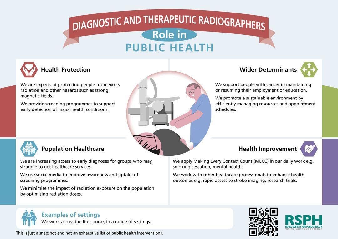 - Akpan E, Kitundu J, Ekpo E. Public health radiography: a scoping review of benefits, and growth opportunities for radiographers. Journal of Medical Imaging and Radiation Sciences. 2021 Dec 1;52(4):615-25.