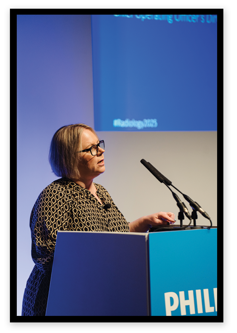 Another way in which Jennifer champions radiography is through her participation in the National Conference for Radiology Leaders (NCRL), a one-day conference held in London. This year’s conference took place on 8 May at the Pullman Hotel, St Pancras, with the theme of ‘People-centred innovation: transforming care through collaboration’. Jennifer delivered the morning keynote speech on the theme of leadership, titled ‘Breaking barriers, building futures: The transformative power of radiology leadership’.