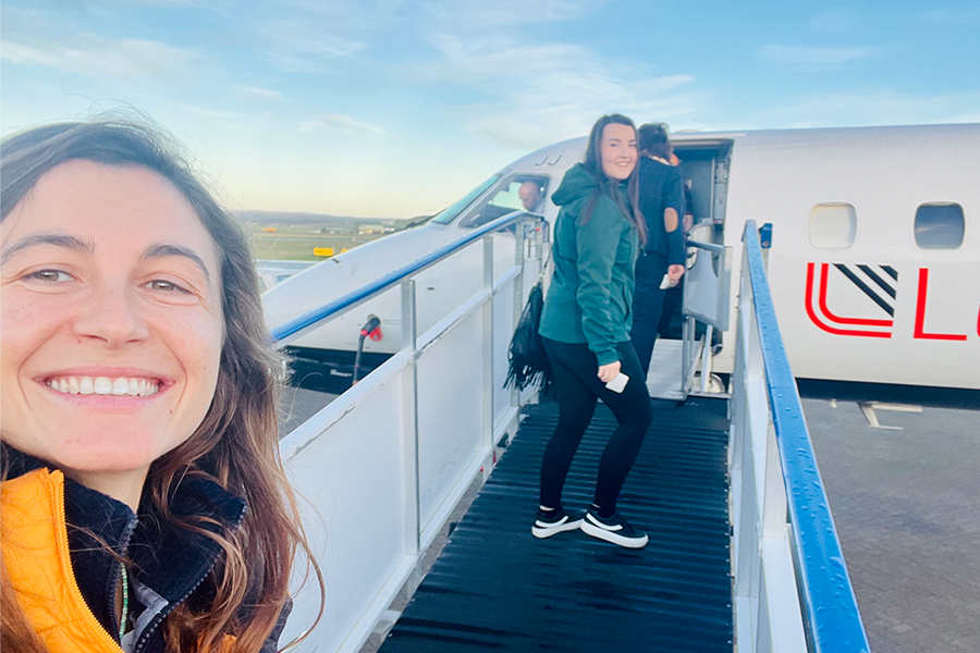 Alex and Rachel boarding the plane to work from Stornoway to Uist