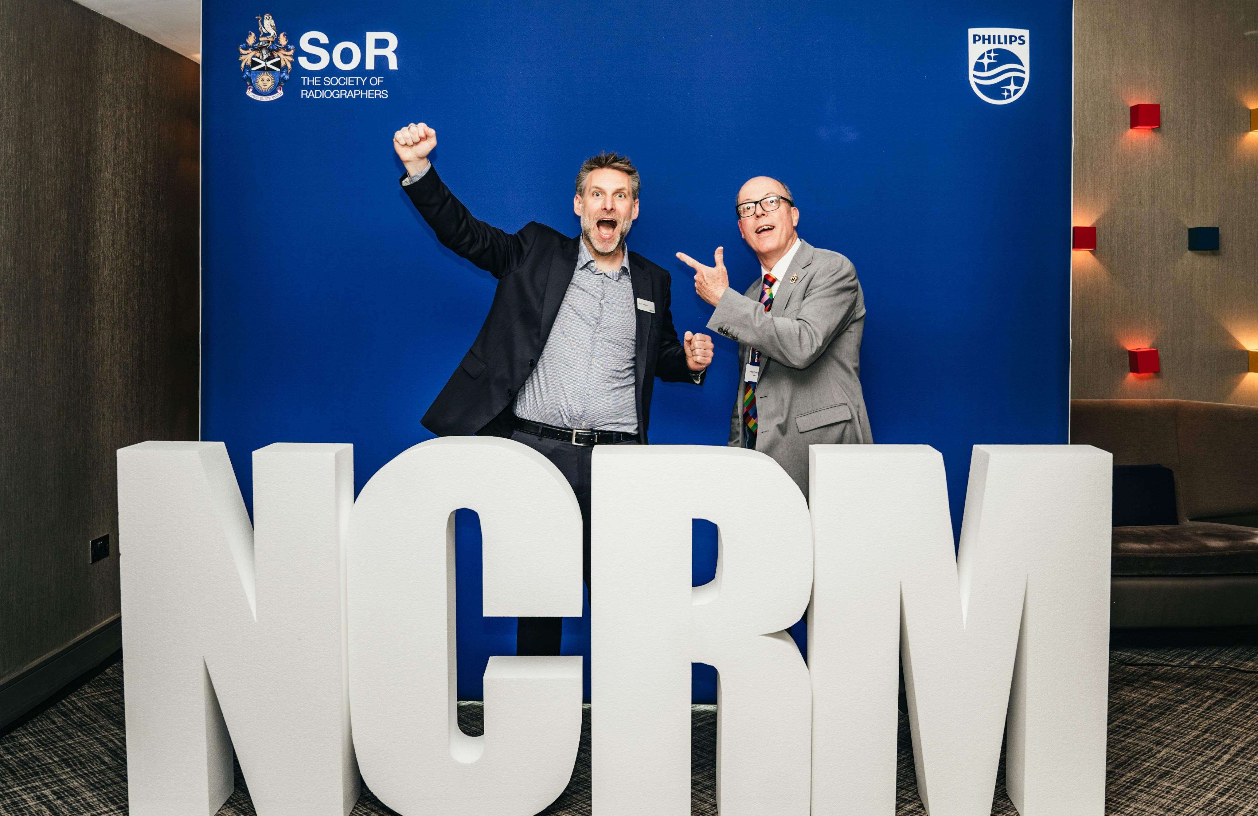 Mark Leftwich from Philips (left) and SoR CEO Richard Evans celebrating NCRM 2024