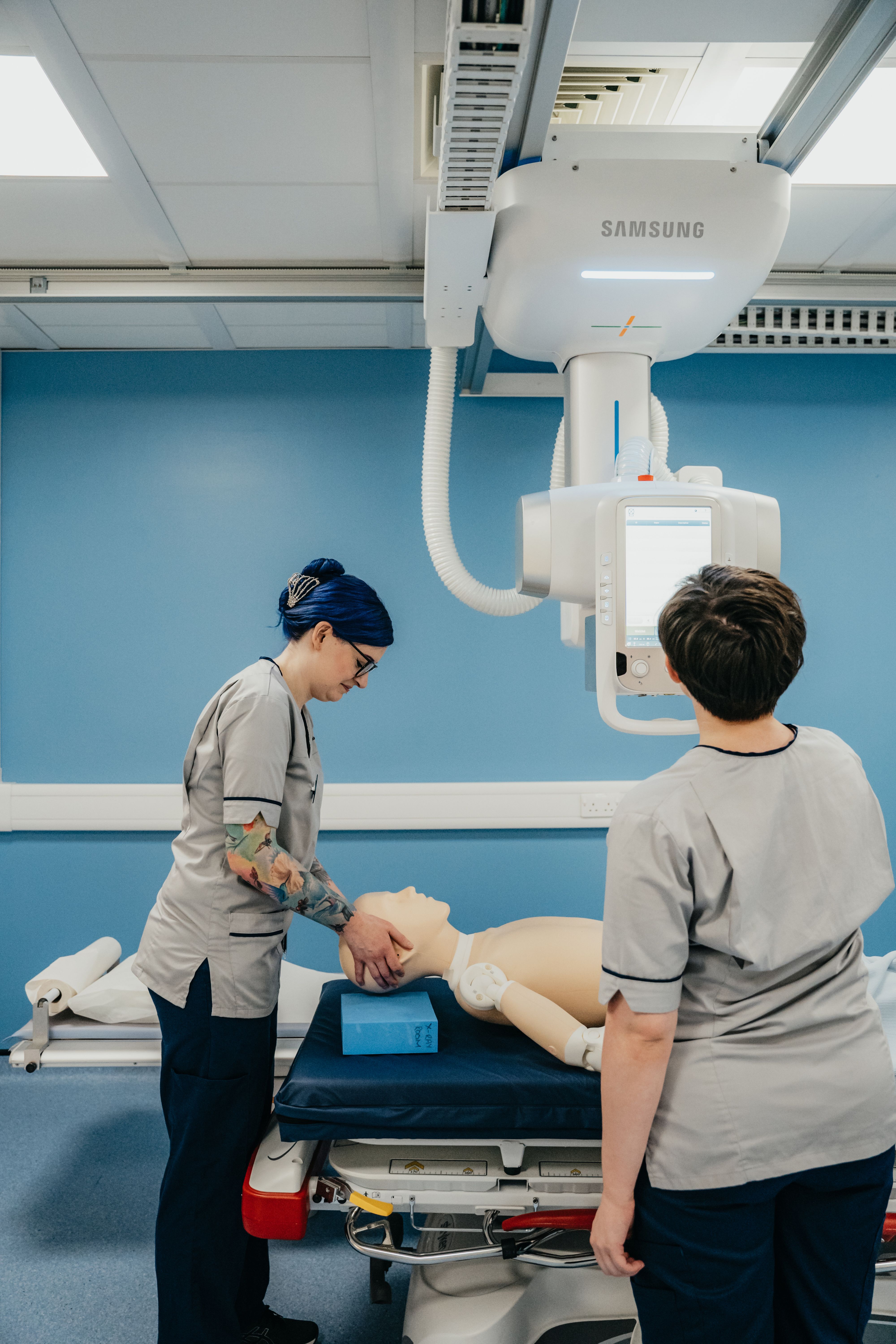 In July, Synergy visited Glasgow Caledonian University and had a first-hand demonstration by Julia and fellow radiography student Karine Lindsay demonstrating how to use radiography equipment at the university. Unlike Julia, Karine side-stepped into radiography from a job a bit closer to home. She had worked for NHS 24, Scotland’s version of the 111 out-of-hours telephone service – a job she still does on the weekends – before moving to radiography.
