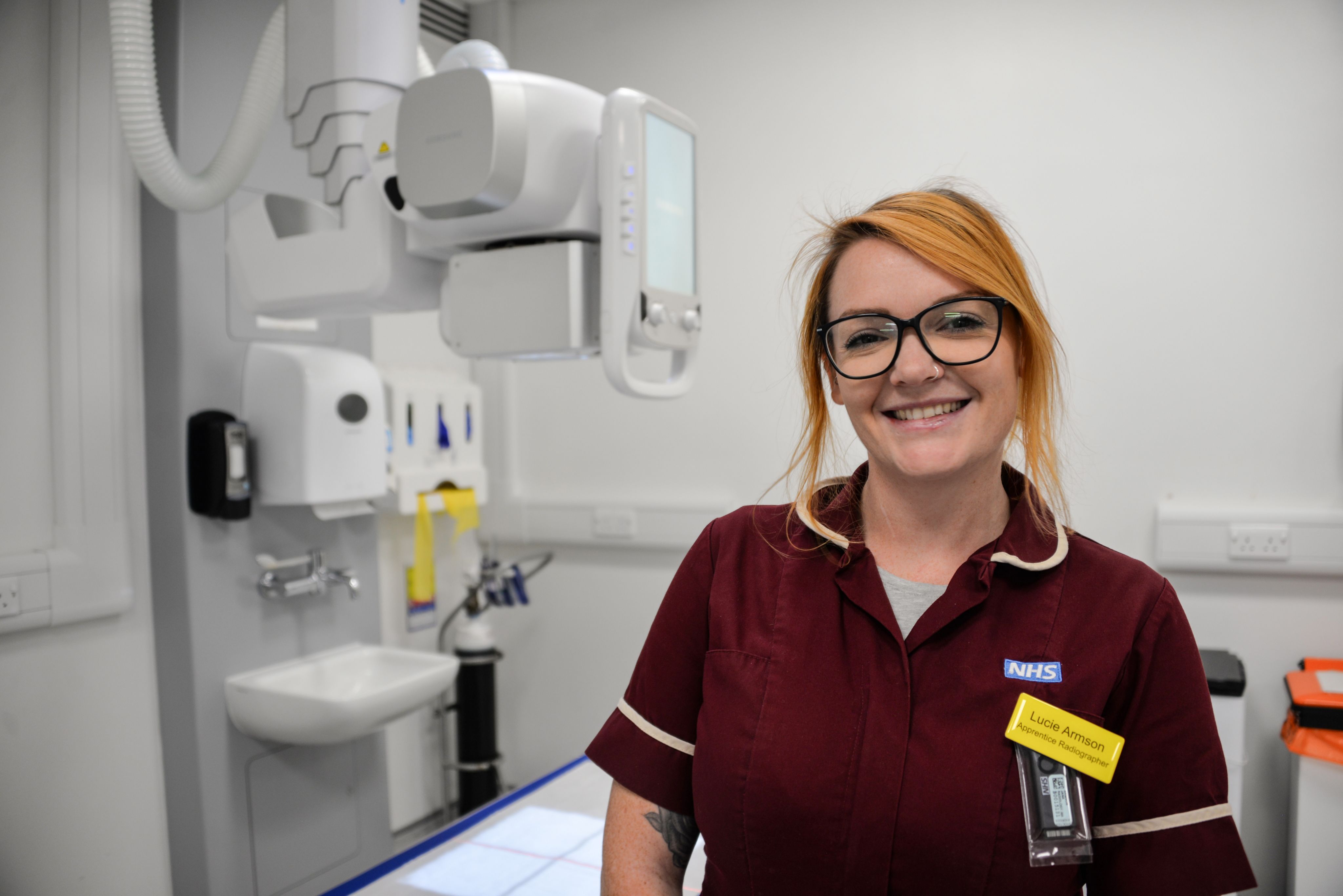 Lucie hadn’t felt drawn to radiography beforehand, instead taking inspiration from a radiography role advertised on the NHS Jobs website, which she says was “the only thing I could picture myself doing”.