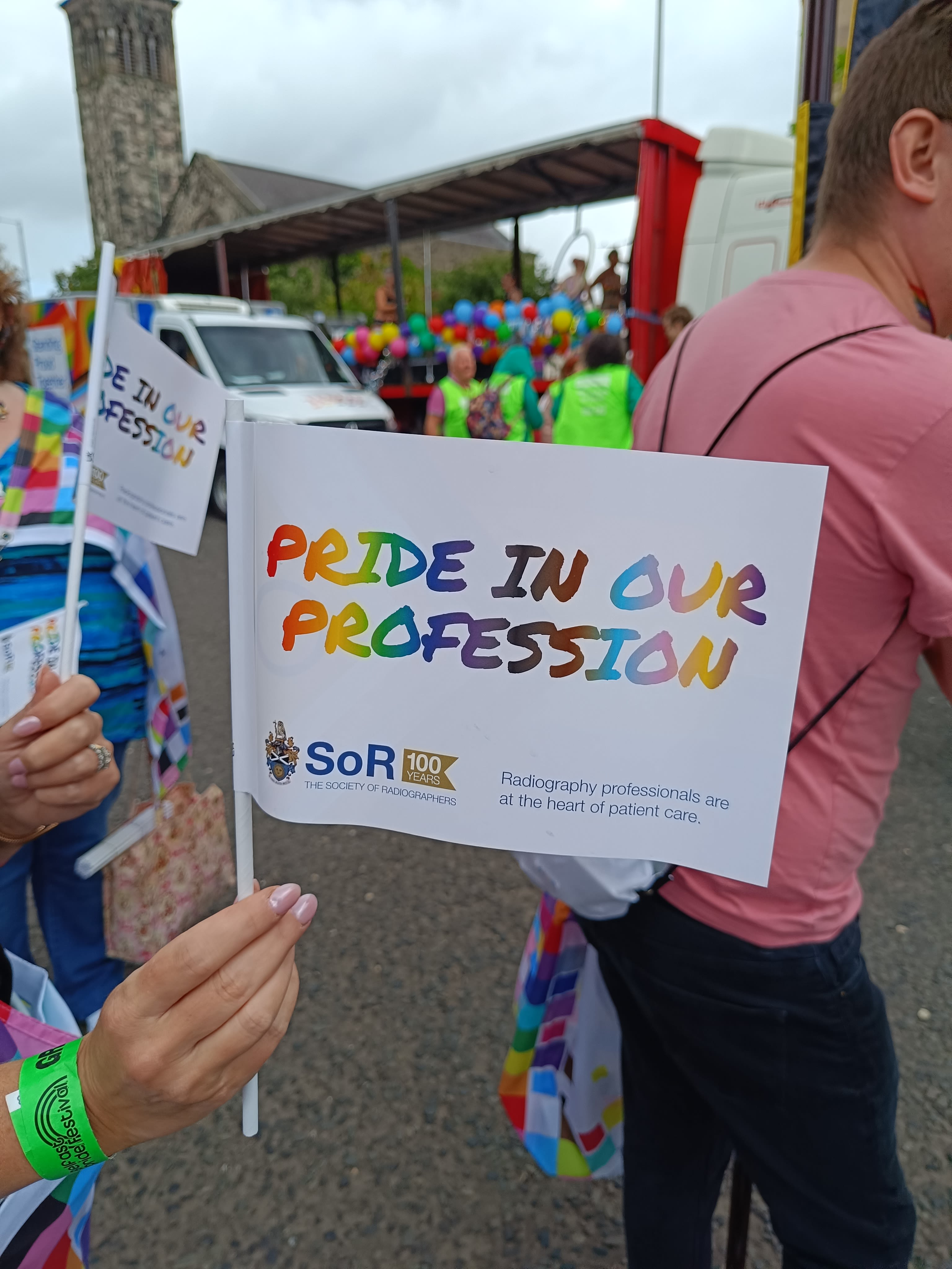 Senior radiographer Richard Flood (pictured above), waving the SoR flag and wearing a t-shirt with the message “100% LOUD, 100% PROUD”, said: “To paraphrase RuPaul, we have to have pride in ourselves to have pride in our profession.”