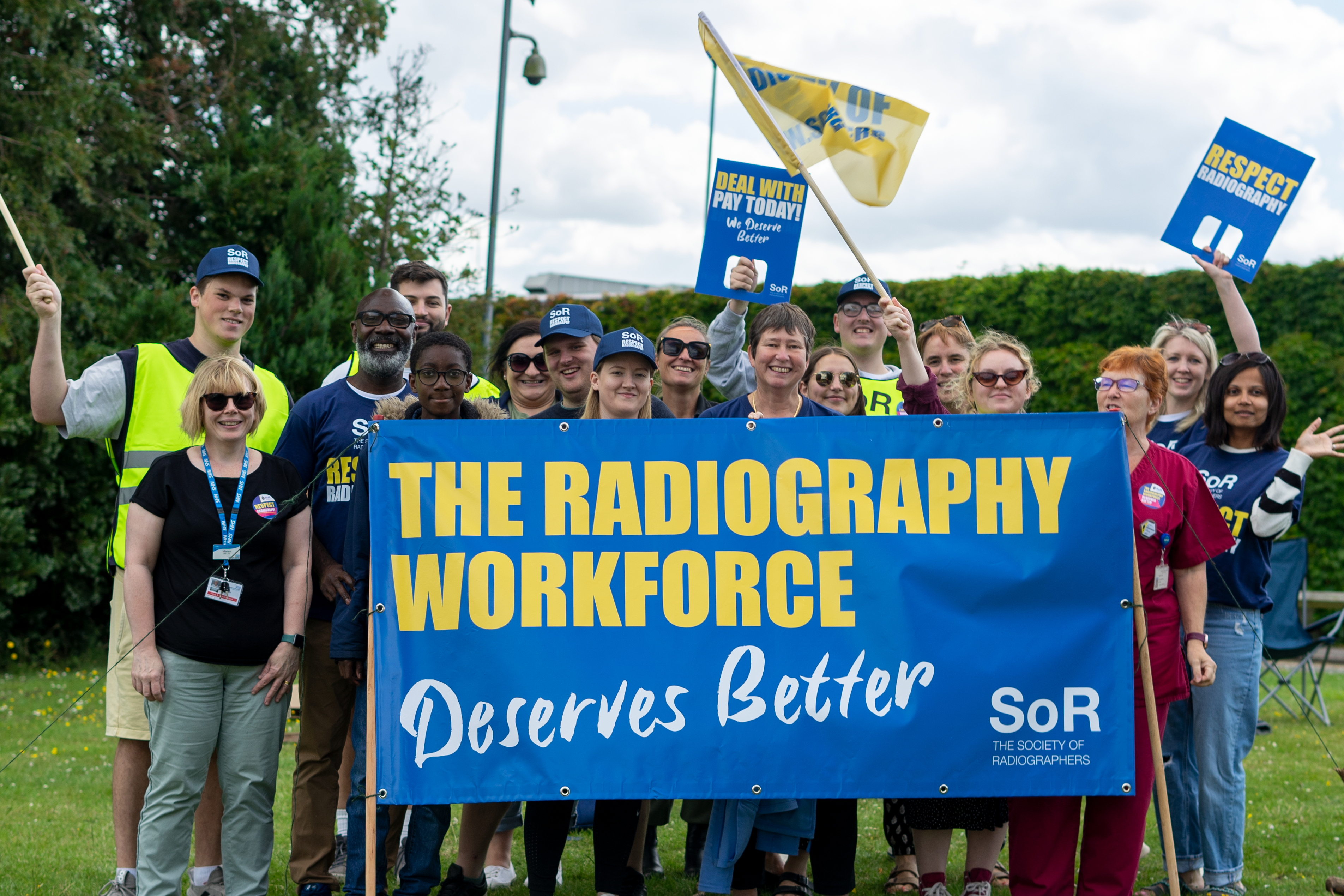 “Radiographers had to think long and hard about whether to take this action, because of the impact on waiting times”, said Marie Bullough, SoR regional officer for South East England. “But the feeling is very strong. Radiographers are really angry, particularly because the government has accepted higher pay review body awards for other sectors having given us 5%. Pay is the solution to all the problems, because better pay improves recruitment and retention – and more radiographers means shorter waiting lists.”