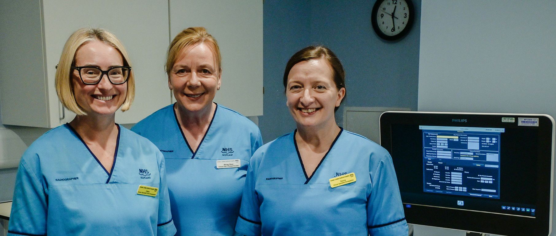 Some of the National Ultrasound Training Programme faculty (L-R: Claire Lindsay, senior specialist lead sonographer, Morag Stout, clinical lead/principal educator (sonography), Donna Meahan, senior sonographer)