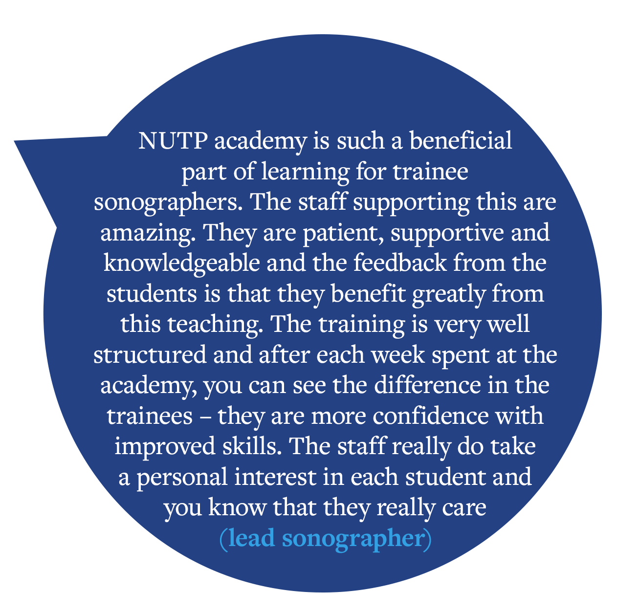 There are several academy models across the UK. Some train medics and sonographers separately. Many use only simulation, and some struggle to recruit or achieve recurring funding. NUTP sits firmly within NHSSA’s education and co-design philosophy, with stakeholder and partner co-design throughout. NUTP’s collaborative approach, clear co-design development principles and educational governance processes are exemplary.