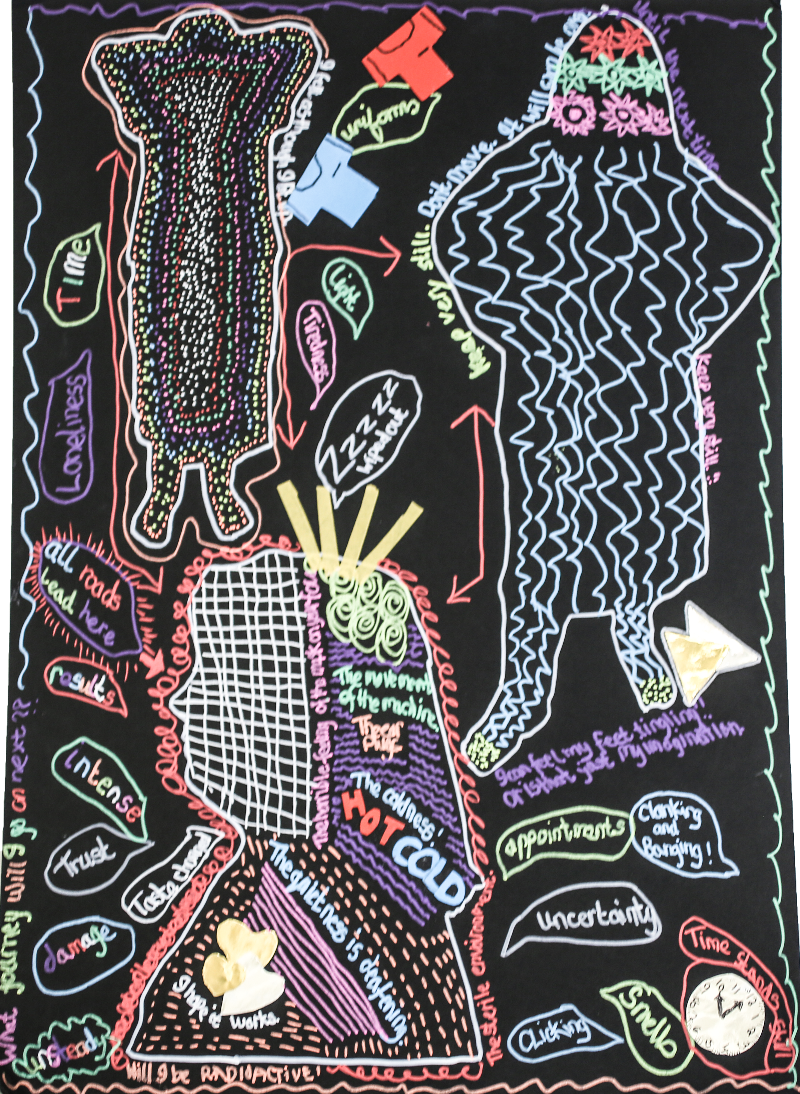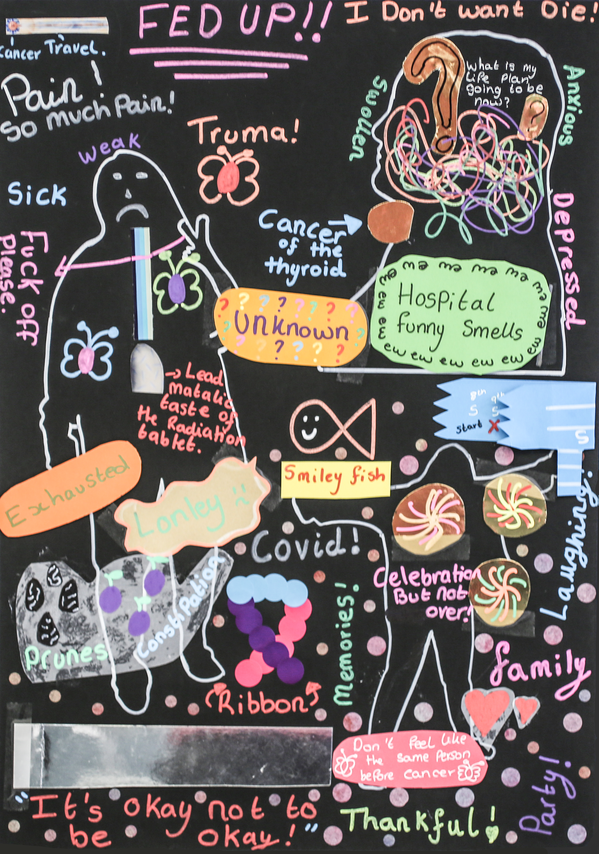 “One participant, because of her treatment, had some impairments down one side of her body, and she was really struggling to cut things out during the project. That was directly related to what we were doing – but she hadn’t mentioned any of this before. We started to talk about that a little bit.”