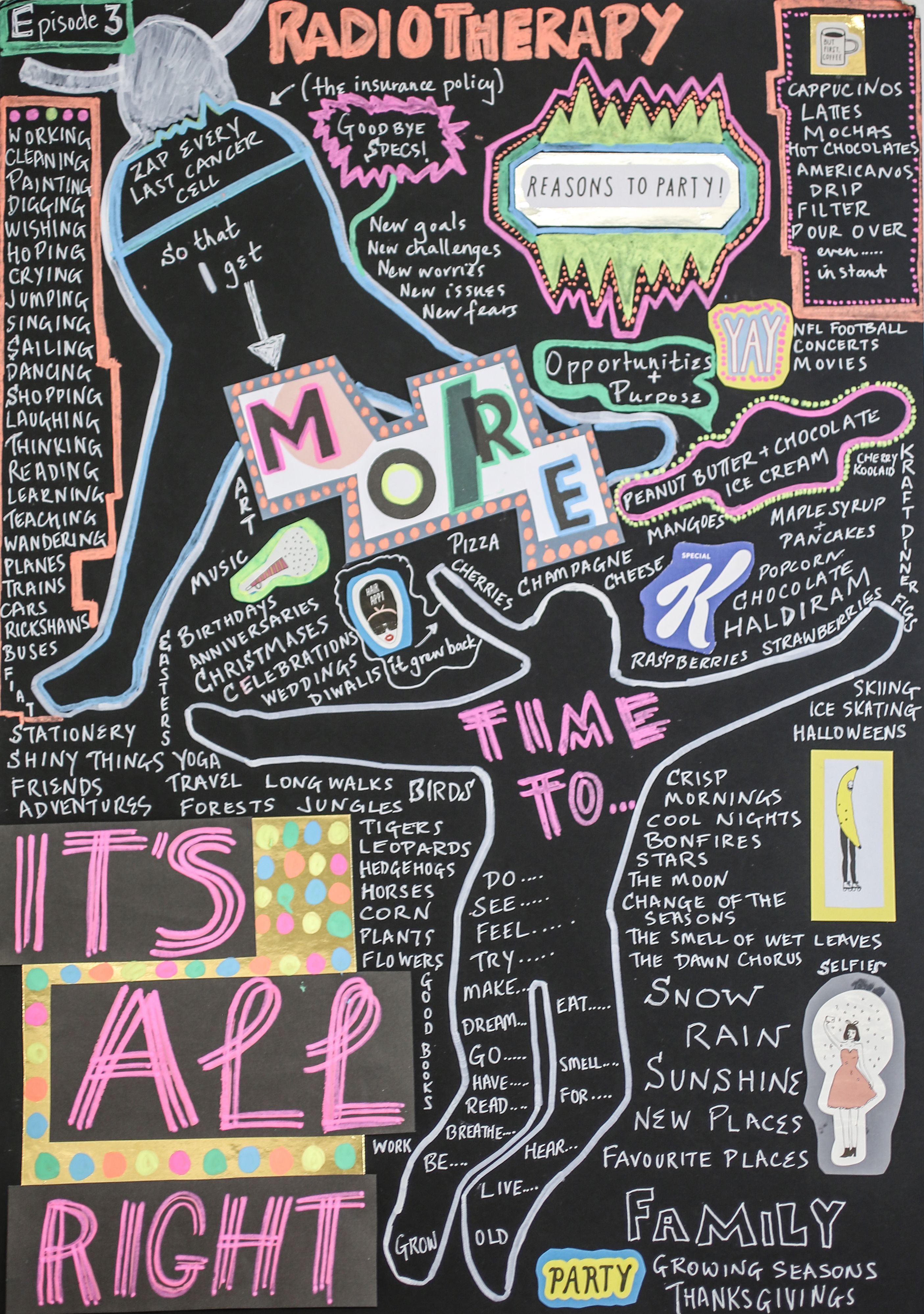 “Experiences of radiotherapy are so varied. Some people have had really tough times, and there are people in their lives that they’re incredibly grateful for. That comes out in these artworks. It’s so rich and detailed.”