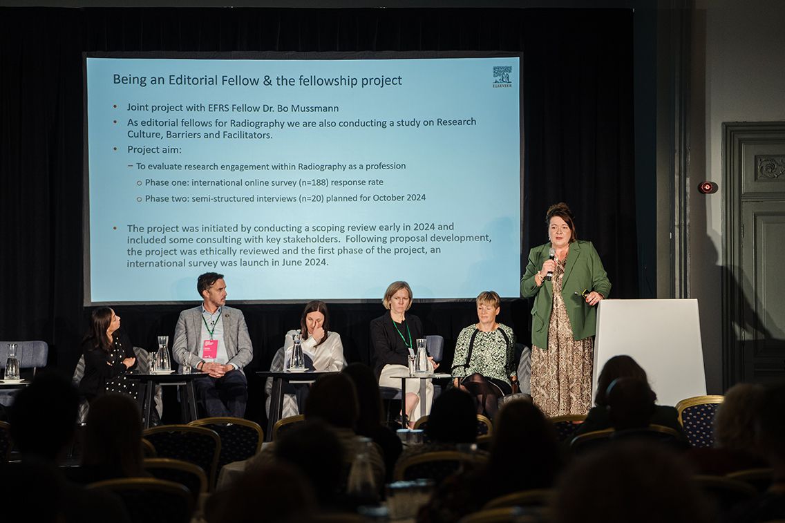 ARC resumed the following day with radiographers returning to the conference hall for a conversation with a professional patient, Elizabeth Smith. Elizabeth is a Therapeutic Radiographer and a professional swimmer who was diagnosed with Hodgkin Lymphoma in 2022. “There wasn’t a fear of the unknown,” she explained. “I did find some comfort in that I was getting treated where I worked!”