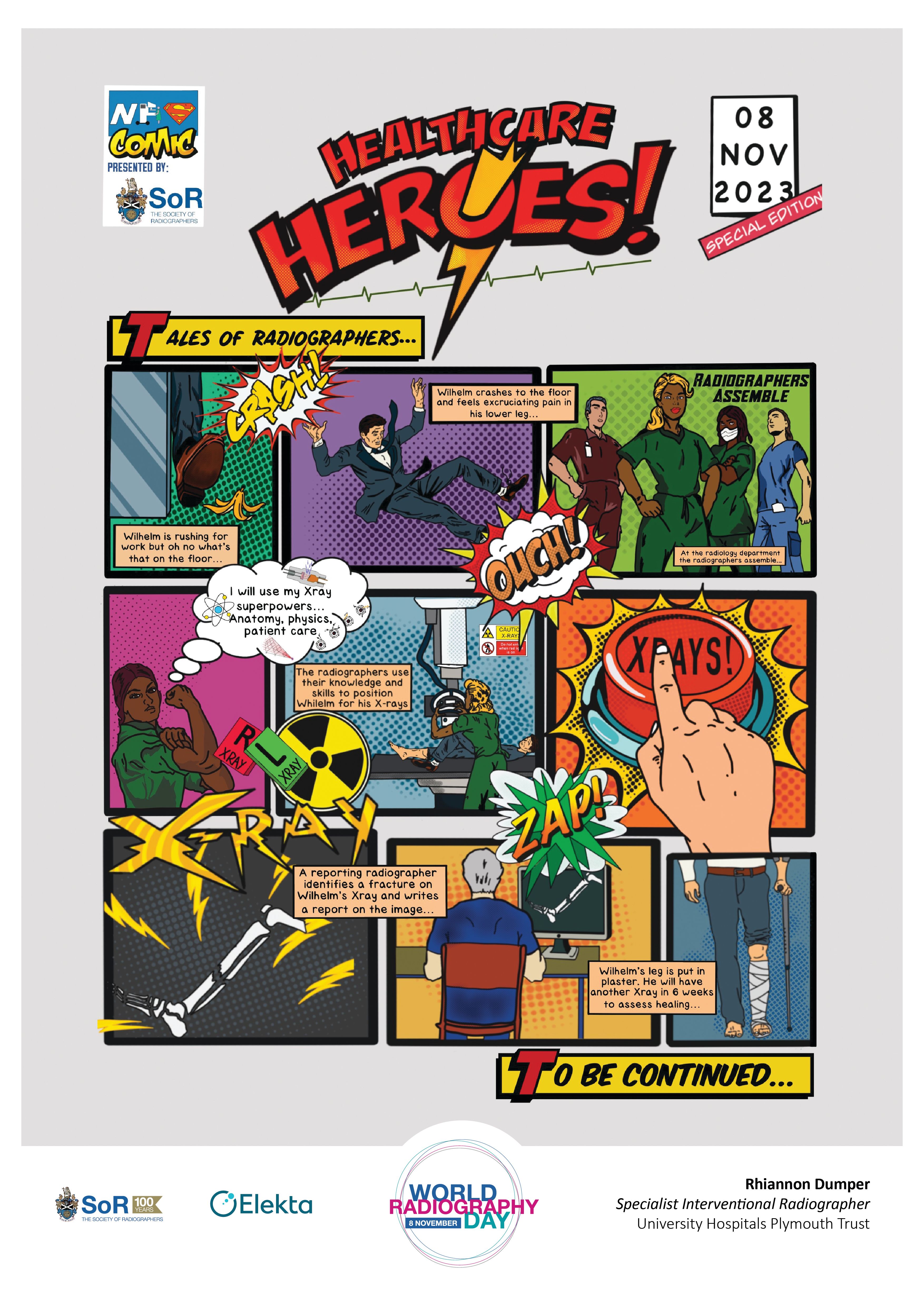 The brief was about presenting radiographers as ‘Healthcare Heroes’ so I drew inspiration from comic book art and comic book action films to depict radiographers as superheroes.