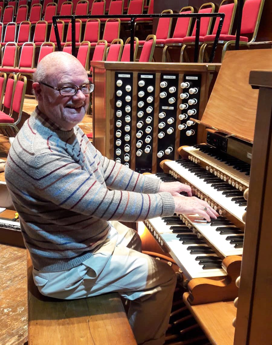 Kenneth at the console of a Concert Hall organ