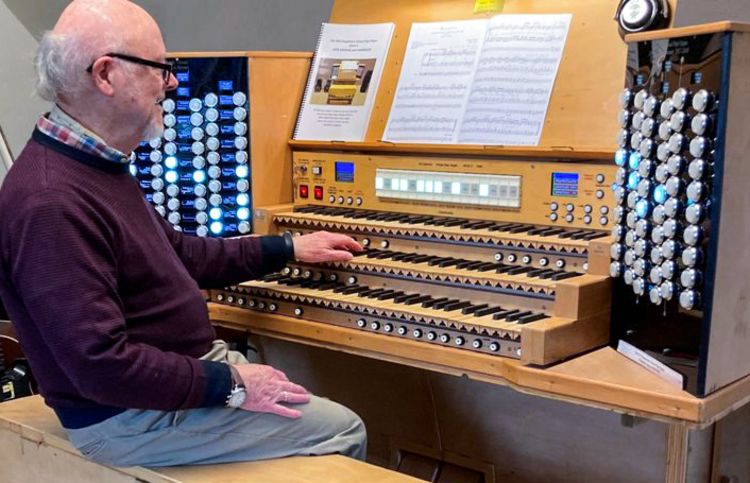Kenneth at home at his self-designed, self built organ console