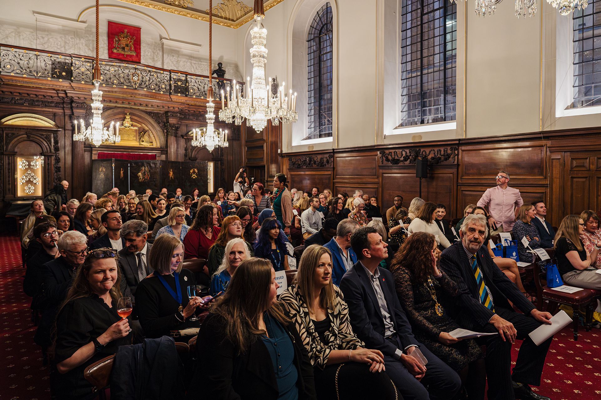 The gathered hopefuls were welcomed into the hall, which sits near Southwark Bridge on the Thames, for drinks in the drawing room. They were then invited downstairs to join the celebration of the teams, individuals and students from across the UK who have made a positive difference to patient care or service delivery or who have excelled academically.